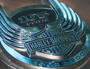 A Harley Davidson Zink Die Cast stylized emblem showing example of a chrome